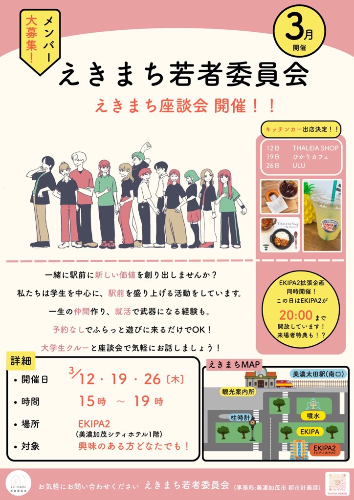 美濃太田駅周辺の賑わい創出に向けたまち活用を目的として、「えきまち若者委員会」のメンバーを募集します。