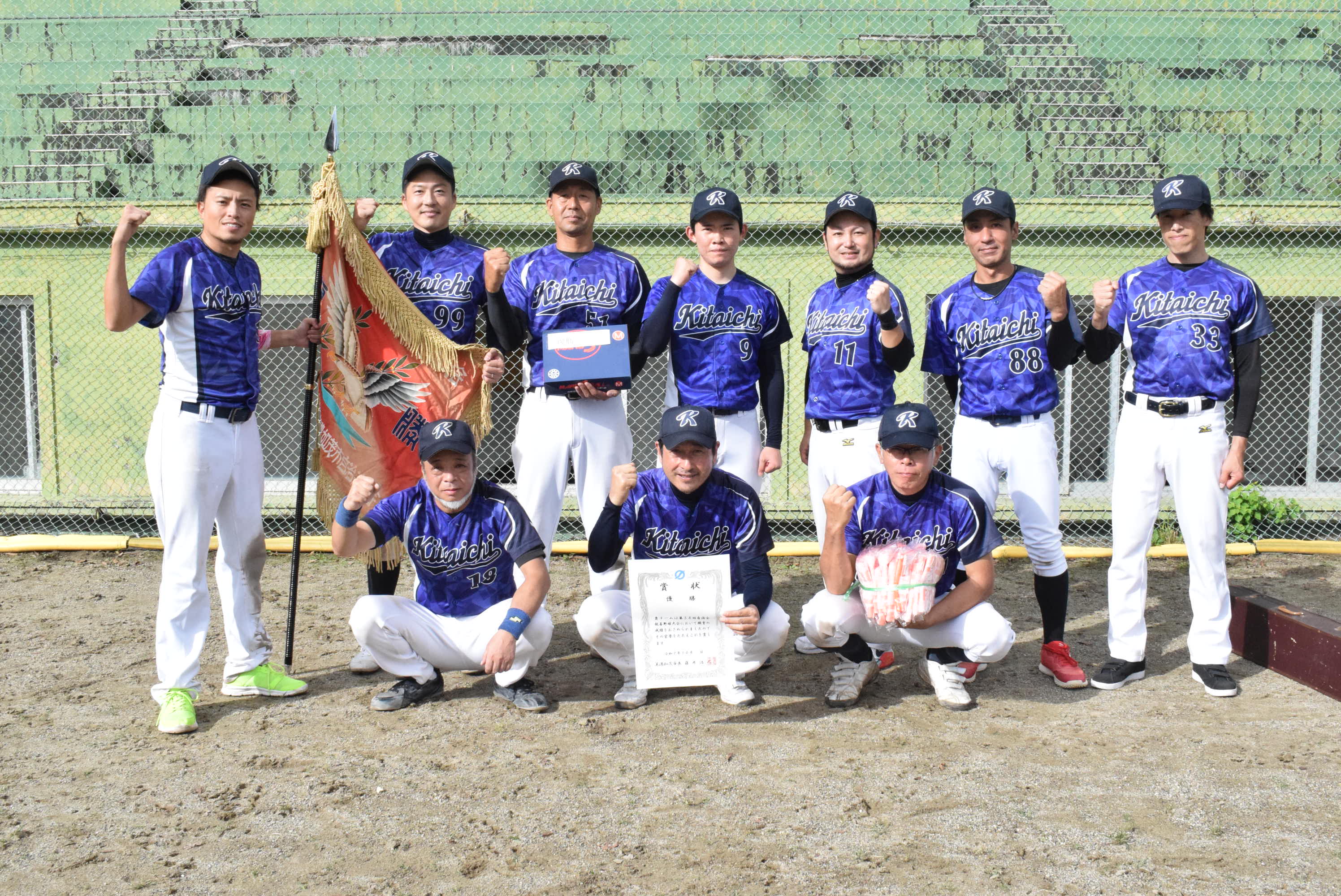 第58回自治会親善野球大会最終日【10月19日(日曜日)】は、特別延長の結果、北一中自治会の17年ぶり2回目の優勝で幕を閉じました。北一中自治会のみなさん優勝おめでとうございました。